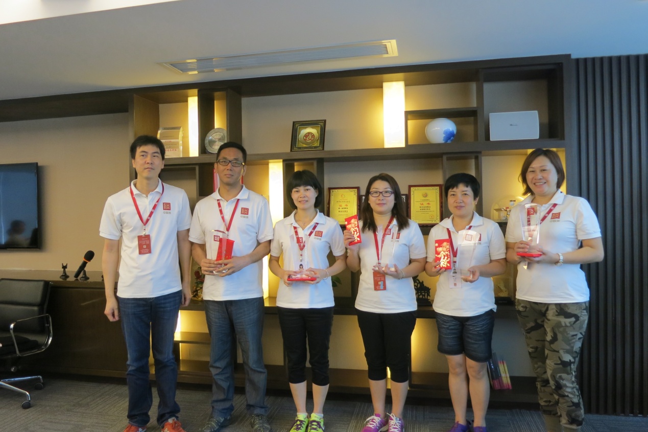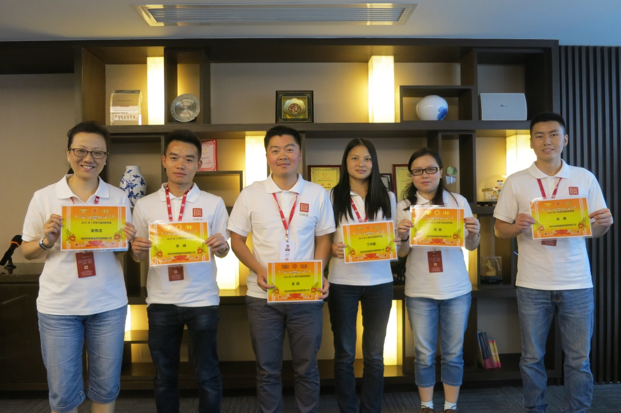 学习培训优秀奖:左起 栾伟洁、李峰、吴勋、丁华丽、贺锟、牟攀