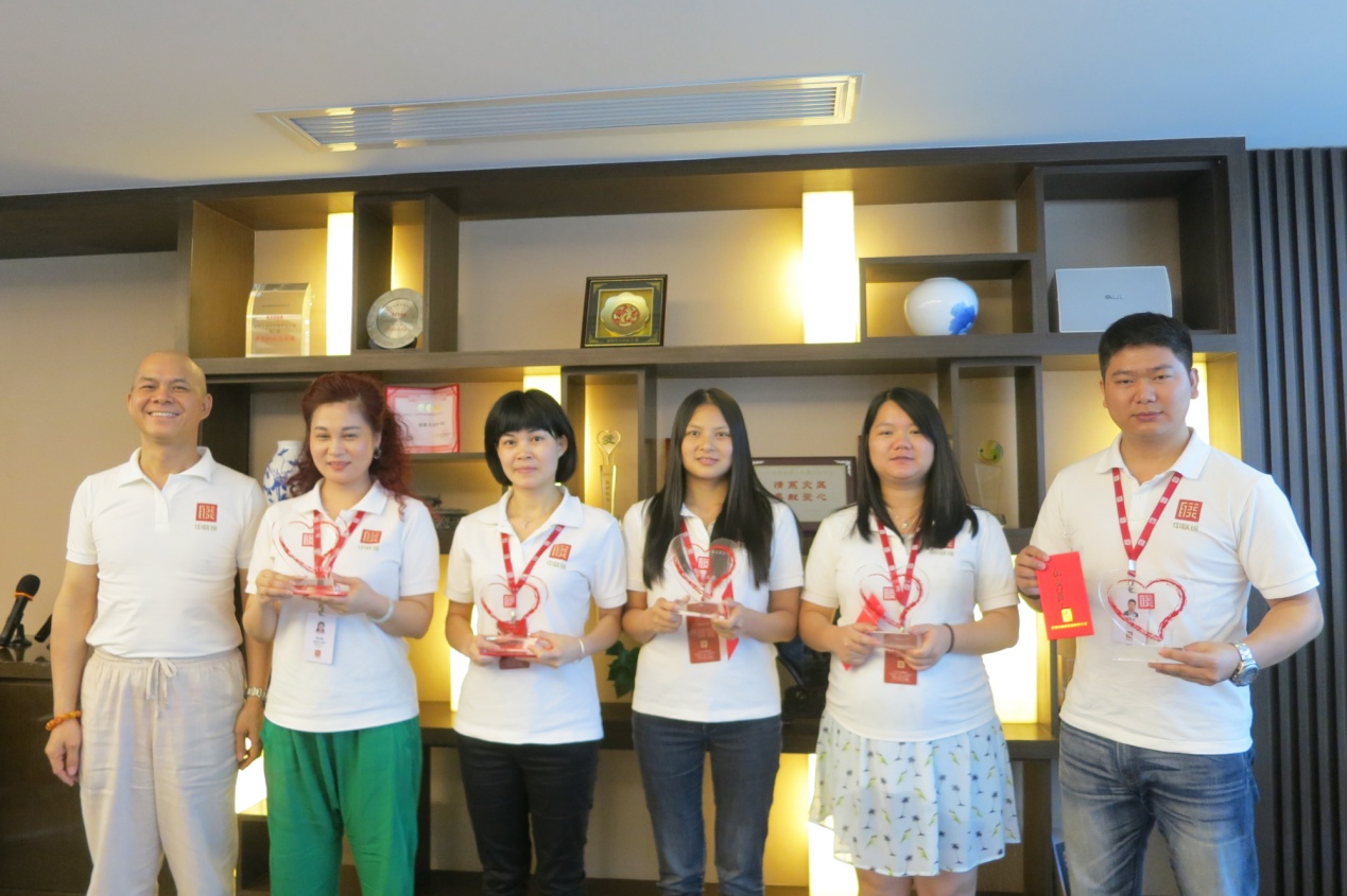 优秀员工奖:左二起 张慧怡、宋梨香、丁华丽、杜明慧、龚雪(郑紫龙代)