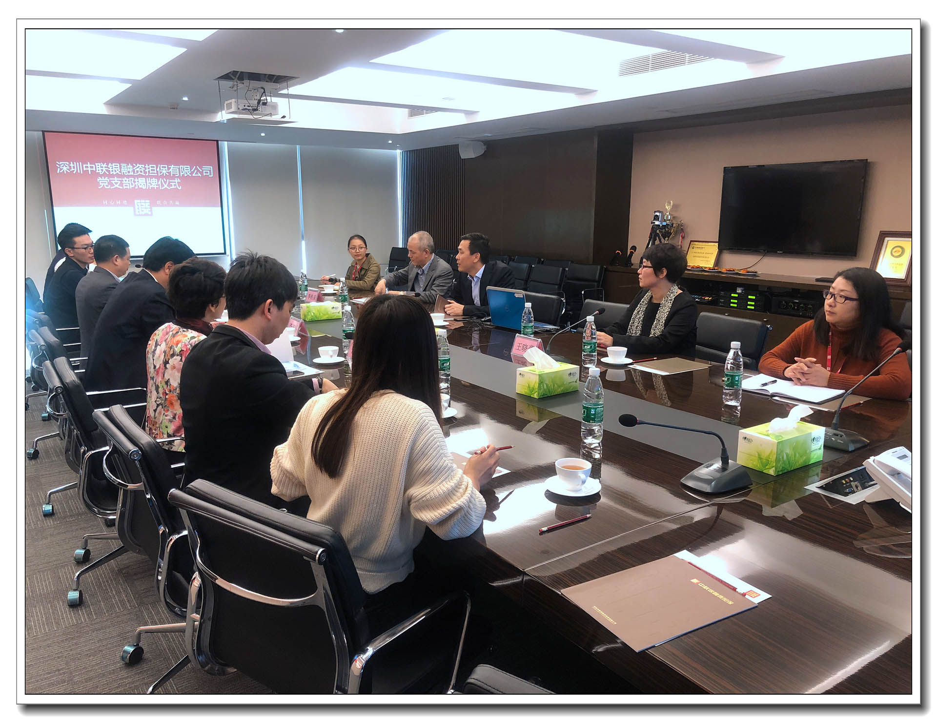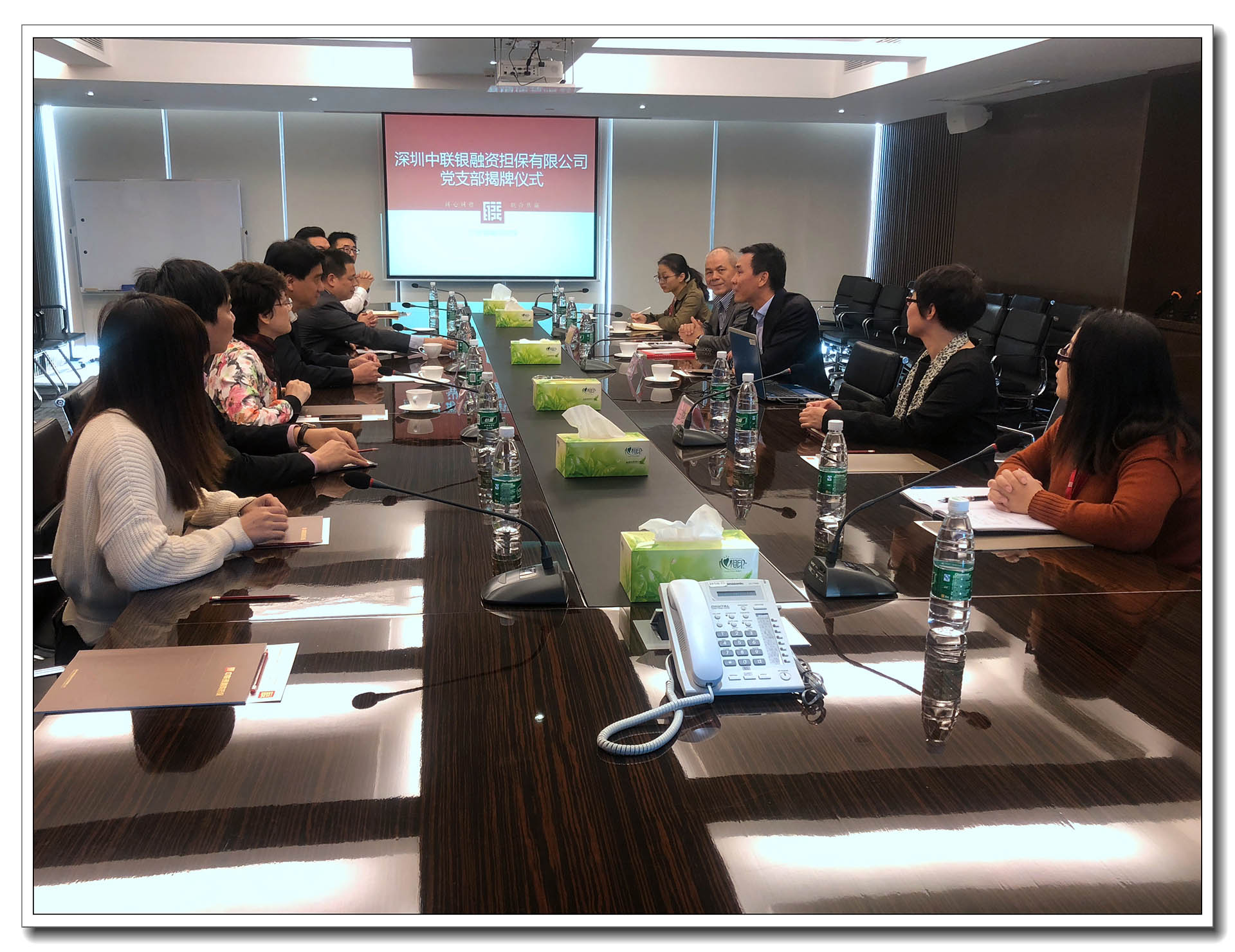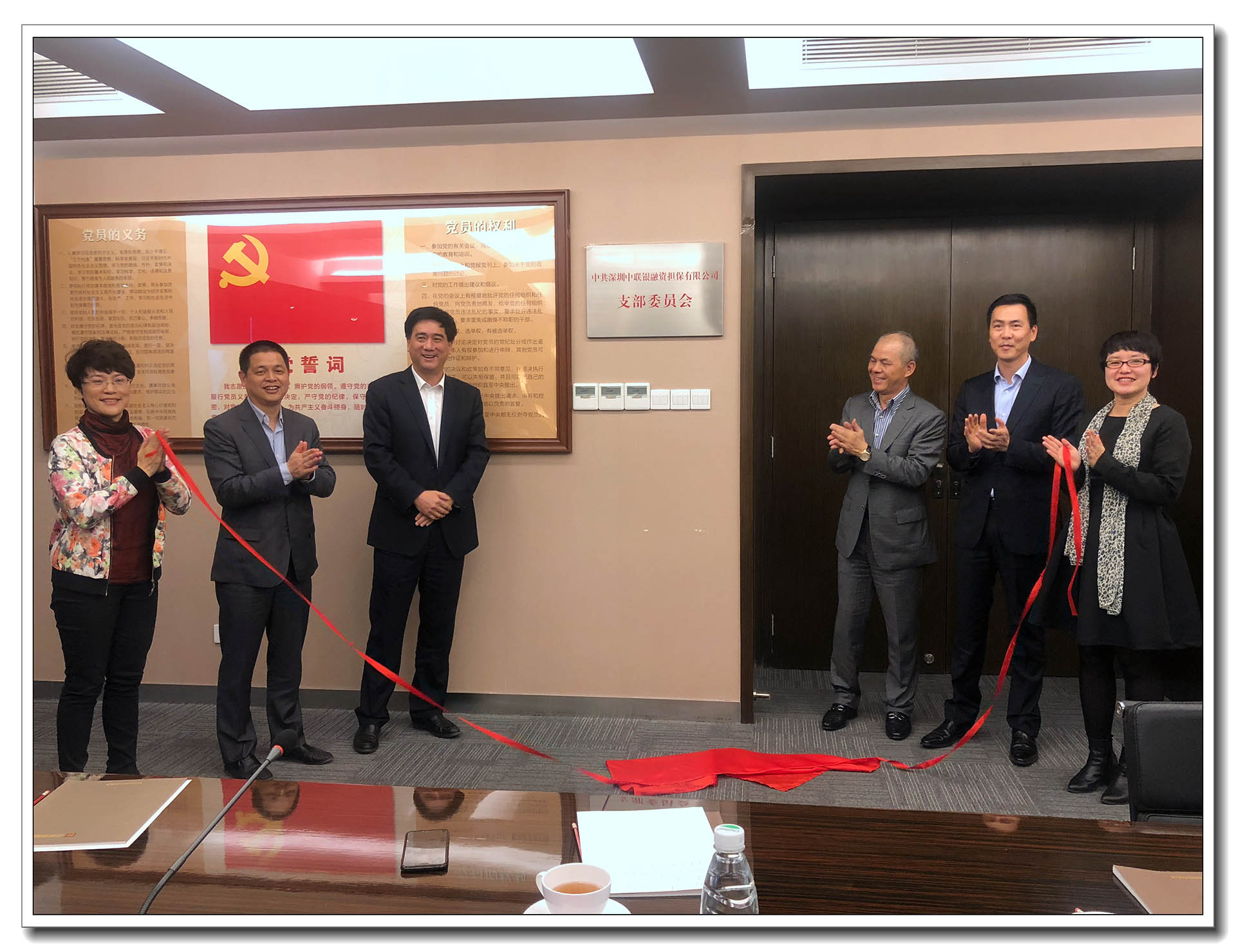 中共深圳市龙岗区横岗街道党工委副书记李泗桥、组织部部长罗铁牛、党建服务中心主任曾利娟,中联银董事长陈文暉、总经理李桂泉及党员代表出席了本次大会并为中联银党支部正式成立进行揭牌。