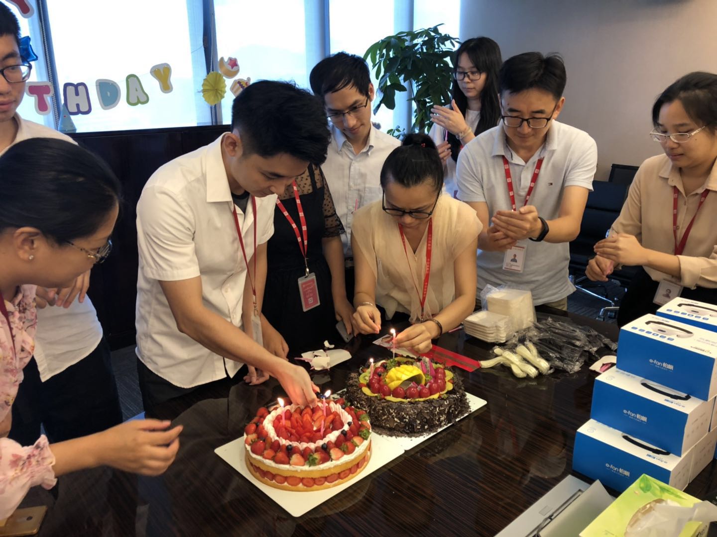 借此普天同庆之日,我司也在今天下午在总部会议室为5-6月生辰的员工们举办了生日会,同事们为生日会精心布置了场地、游戏道具及奖品,预定了生日蛋糕、奶茶、水果等食物,还为各位寿星准备了生日礼物,生日会在一片欢声笑语中愉快举行,让我们来重温一下吧!