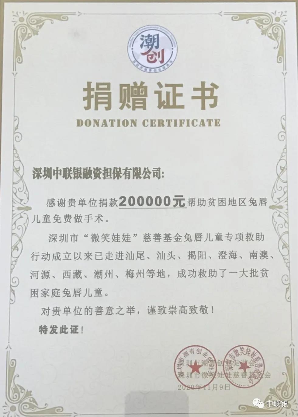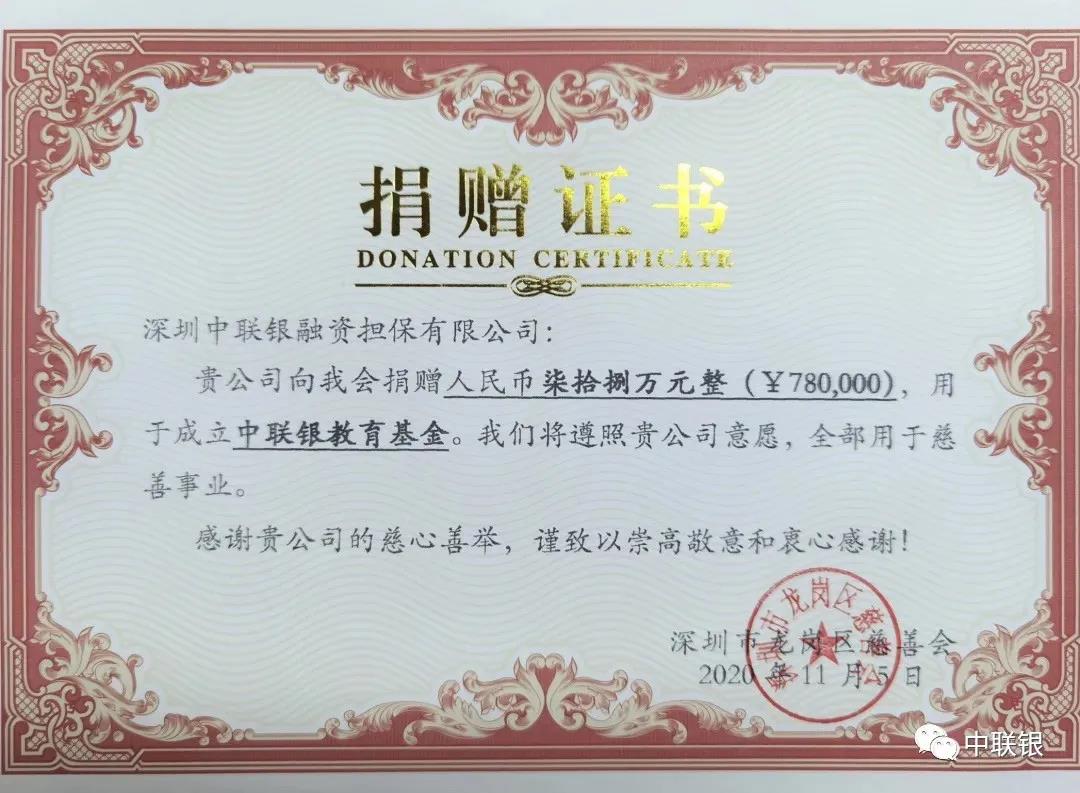 “中联银教育基金”是yl23411永利于2020年10月捐赠人民币20万元在深圳市龙岗区慈善会名下设立的冠名教育基金,首批捐赠款在中联银陈文晖董事长及公司股东的响应下共募集到78万元。