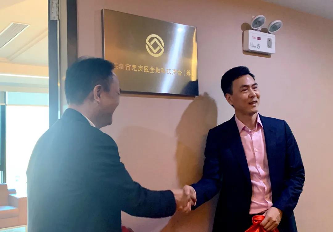 中联银董事长陈文晖、区金融商会黄时余会长共同为“深圳市龙岗区金融科技商会(筹)”揭牌。