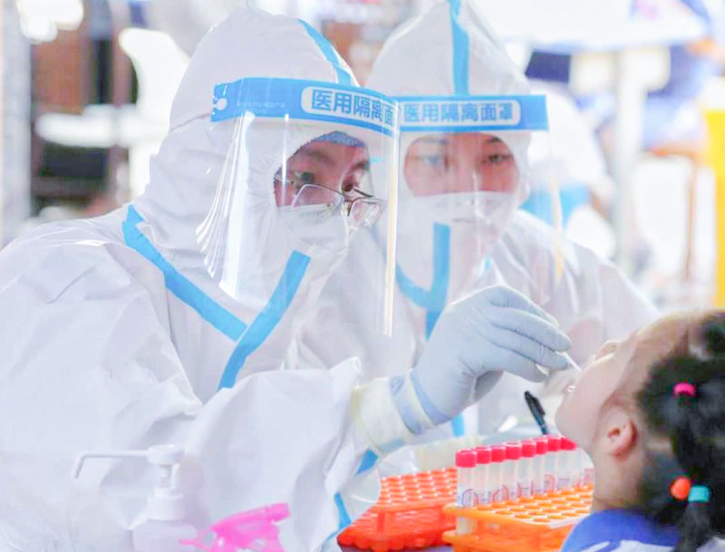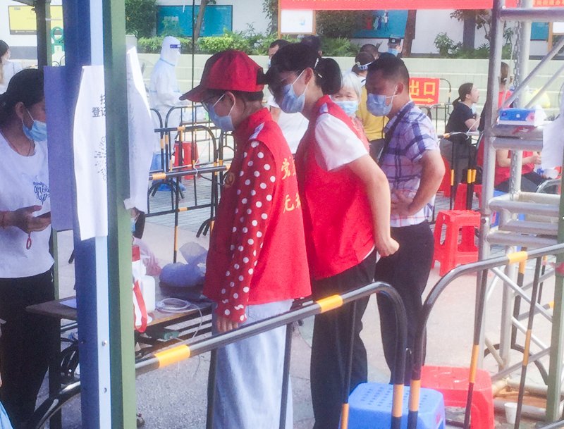 医务人员、警察、志愿者、社区工作人员……在各街道、社区检测点一线,大家冒着高温参与疫情防控工作。他们坚守岗位,逆行而上,奋战在防疫一线。