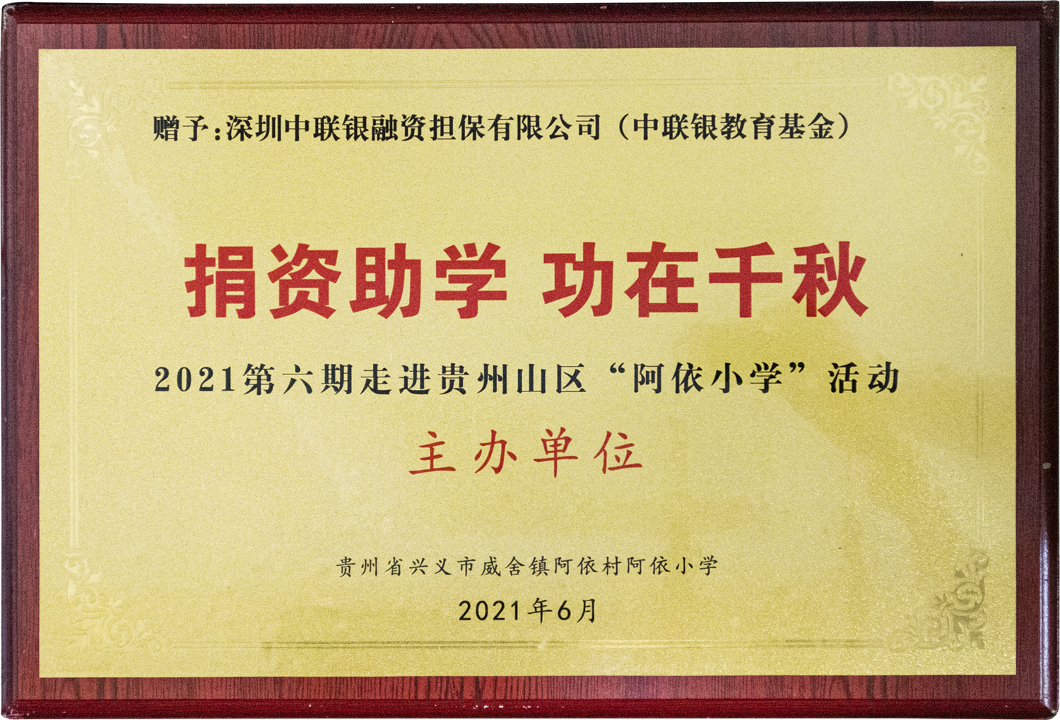 今年6月,中联银教育基金向学校捐赠50万元,正式援建希望小学,助力中国青少年发展基金会教育事业的发展。同时在“走进贵州山区“阿依小学”活动中”也捐资助学,帮助贫困的孩子们能够公平的受到教育。