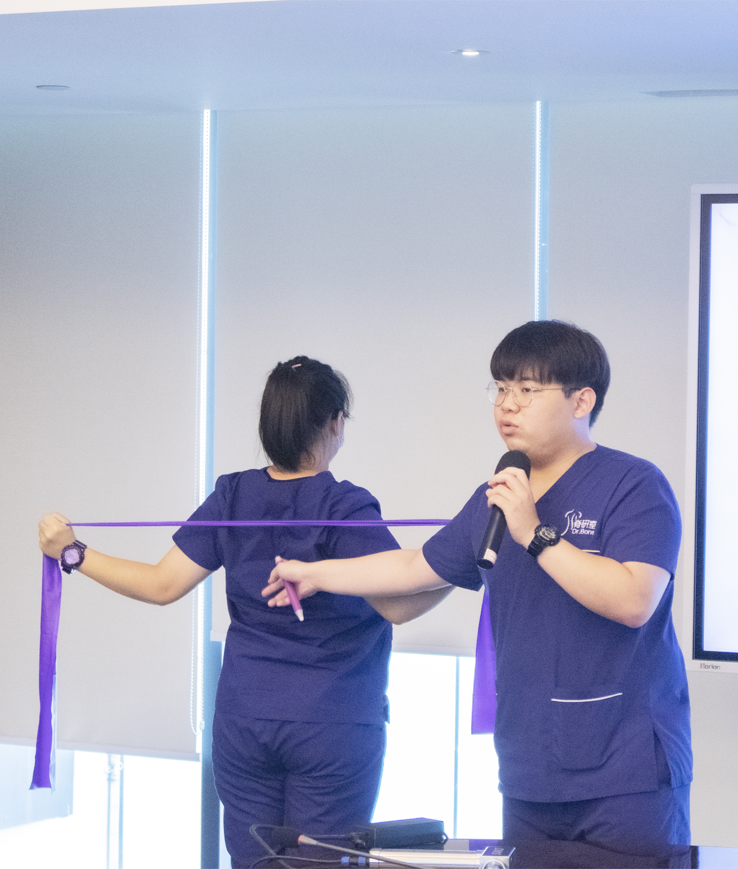 讲座中,曾老师具体介绍了肩颈不适给身体带来的困扰,以及日常行为对肩颈带来的危害等知识,并针对我们普遍存在的肩周炎、颈椎病等职业病问题,现场演示了肩颈修复和脊柱保养等方法,使我们能通过简单的方式缓解释放压力。
