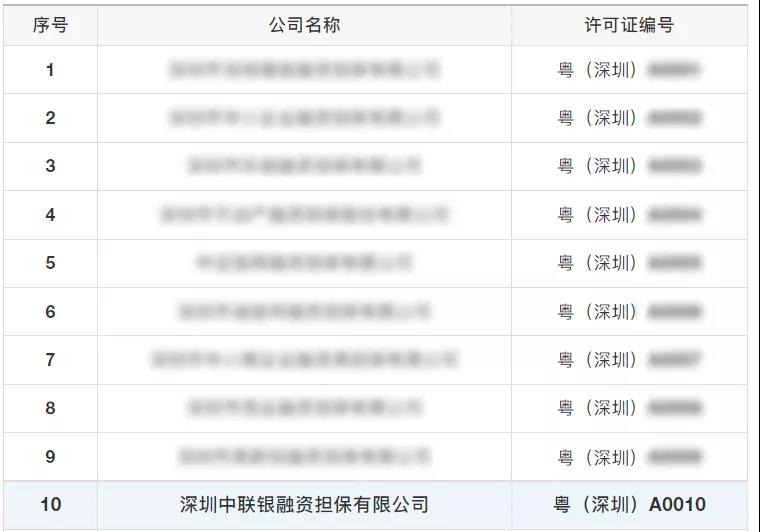 2022年1月18日,广东省地方金融监督管理局发布“广东省持融资担保业务经营许可证融资担保公司名录”,截至2021年12月31日,广东省共有持融资担保业务经营许可证融资担保机构174家,其中深圳融资担保公司59家,而中联银位列其中。