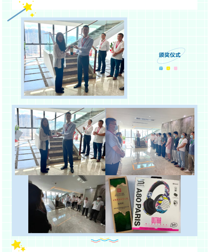 陈文晖董事长百忙之中抽空参与本周晨会,亲手为檀丽君同事颁发了分享之星奖杯与无线蓝牙耳机奖品,对檀丽君同事表示祝贺,并对今日晨会主持人林楚玲同事分享的内容表示肯定。