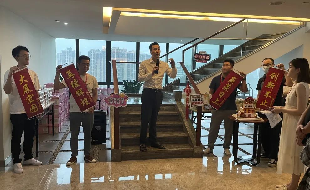 生日会上,陈文晖董事长首先发言:时光如梭,风雨同舟,中联银以矫健的身姿走过了风雨兼程的18年,走过了同心同德的18年,走过了创新发展的18年,在今天迎来了第19个生日。发展中的企业如逆水行舟,不进则退,中联银在讯息万变的行业内不断创新,成长到如今离不开各位同事的顽强拼搏、用心服务,在此真的很感谢各位同事的努力耕耘和付出,让中联银能稳健发展迈入19年!希望所有同事们能陪伴中联银度过更多的生日,见证更多的成就,与中联银共同奋战,共同成长!