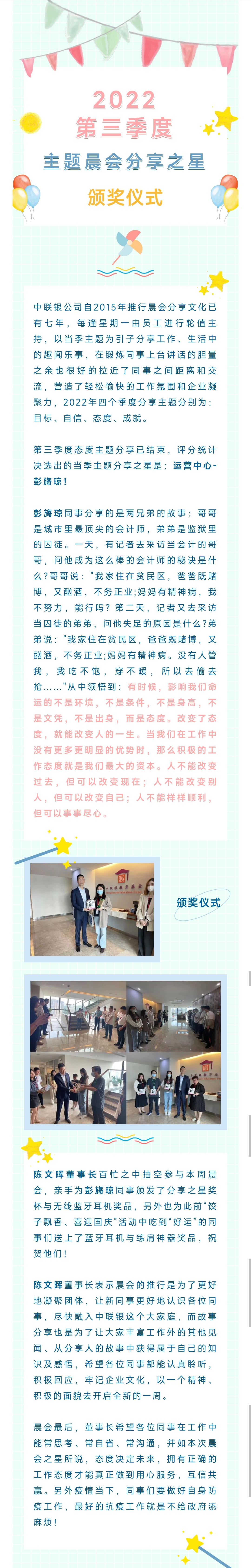 中联银企业文化建设| 主题晨会分享之星颁奖仪式