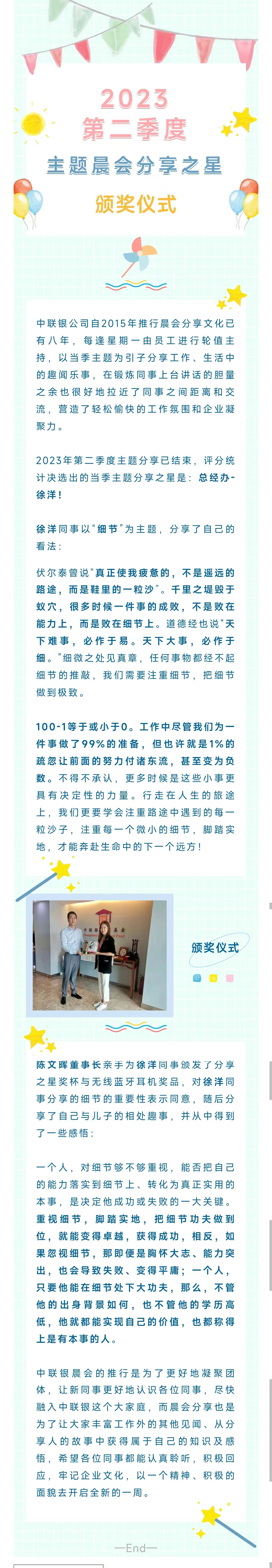 中联银企业文化建设| 主题晨会分享之星颁奖仪式