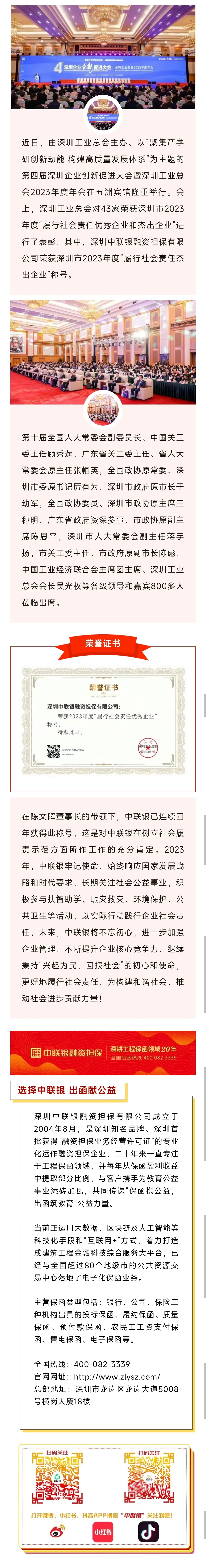 中联银荣获2023年度“履行社会责任杰出企业”称号!