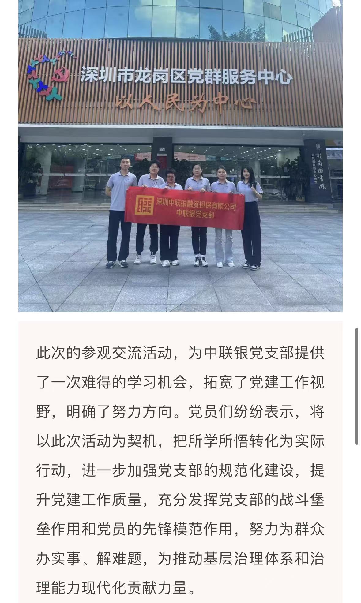 学践同行,党建兴企!中联银党支部前往深圳市龙岗区党群服务中心进行参观学习