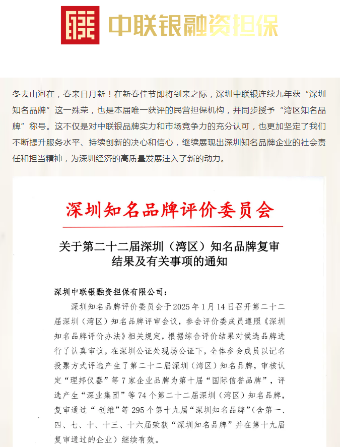 热烈祝贺中联银获评“深圳知名品牌”及“湾区知名品牌”!