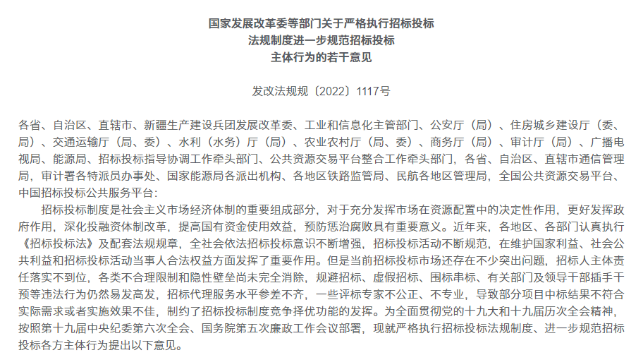(二)严格执行强制招标制度。依法经项目审批、核准部门确定的招标范围、招标方式、招标组织形式,未经批准不得随意变更。依法必须招标项目拟不进行招标的、依法应当公开招标的项目拟邀请招标的,必须符合法律法规规定情形并履行规定程序;除涉及国家秘密或者商业秘密的外,应当在实施采购前公示具体理由和法律法规依据。不得以支解发包、化整为零、招小送大、设定不合理的暂估价或者通过虚构涉密项目、应急项目等形式规避招标;不得以战略合作、招商引资等理由搞“明招暗定”“先建后招”的虚假招标;不得通过集体决策、会议纪要、函复意见、备忘录等方式将依法必须招标项目转为采用谈判、询比、竞价或者直接采购等非招标方式。对于涉及应急抢险救灾、疫情防控等紧急情况,以及重大工程建设项目经批准增加的少量建设内容,可以按照《招标投标法》第六十六条和《招标投标法实施条例》第九条规定不进行招标,同时强化项目单位在资金使用、质量安全等方面责任。不得随意改变法定招标程序;不得采用抽签、摇号、抓阄等违规方式直接选择投标人、中标候选人或中标人。除交易平台暂不具备条件等特殊情形外,依法必须招标项目应当实行全流程电子化交易。