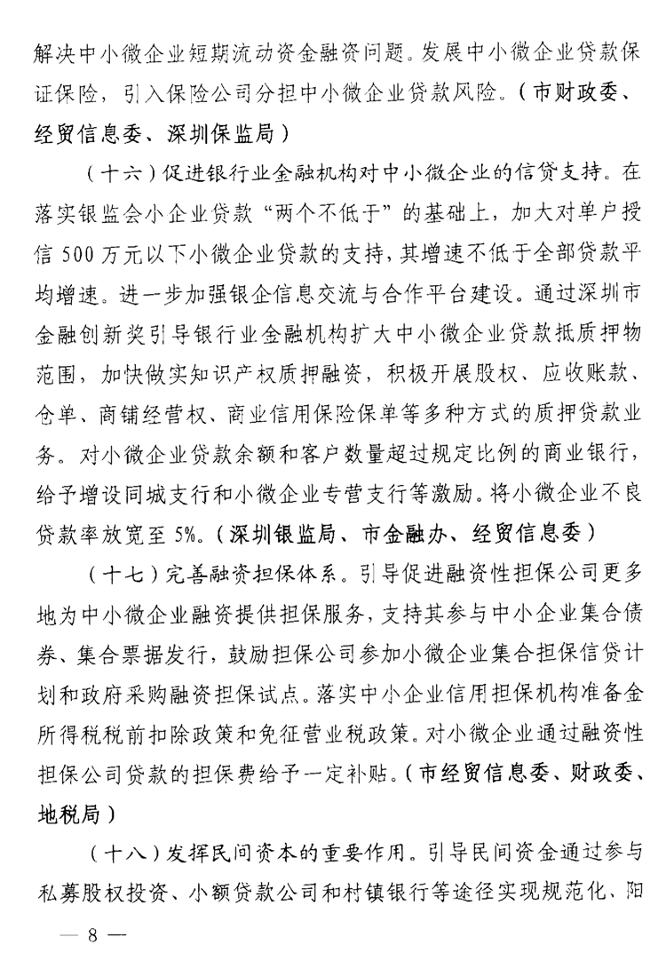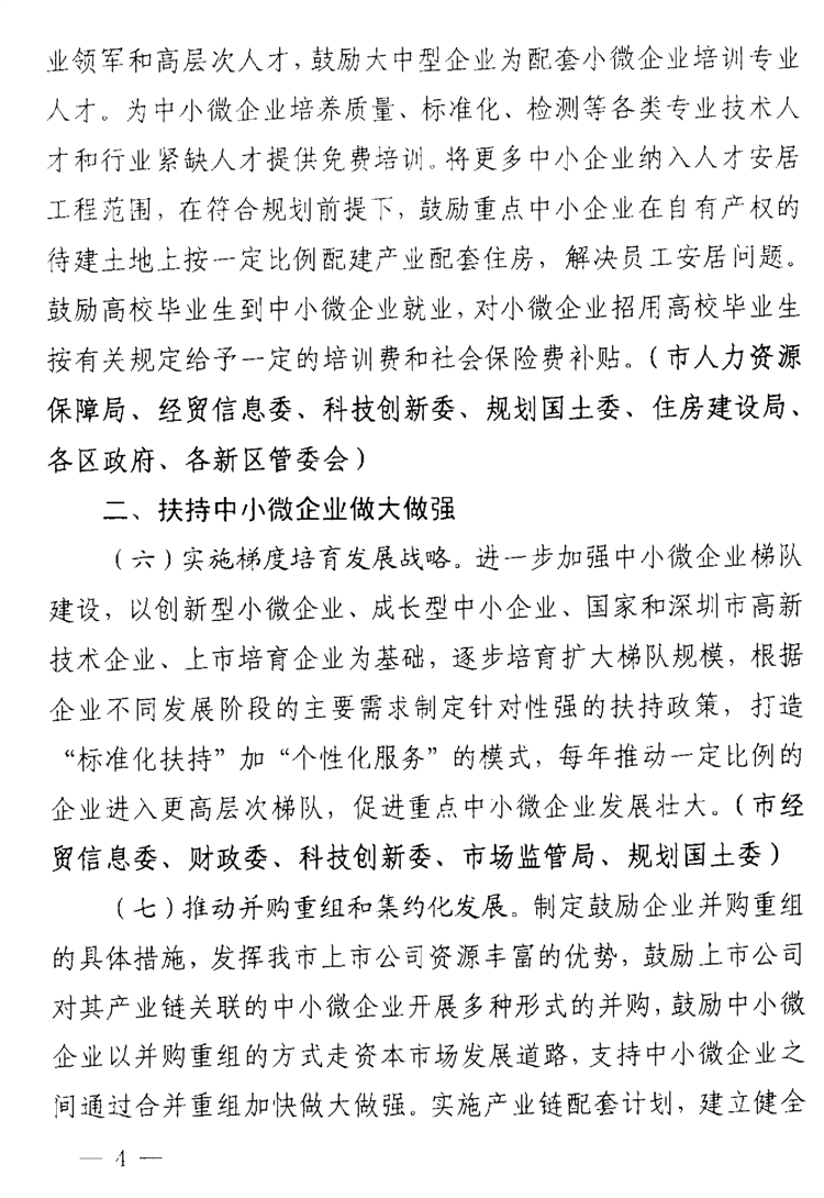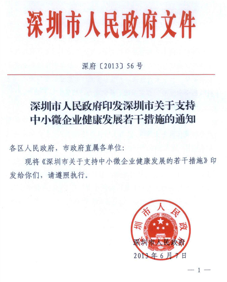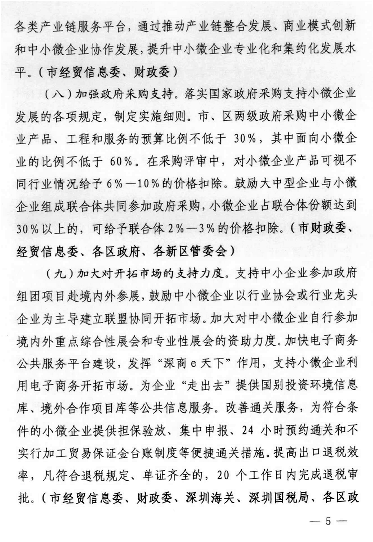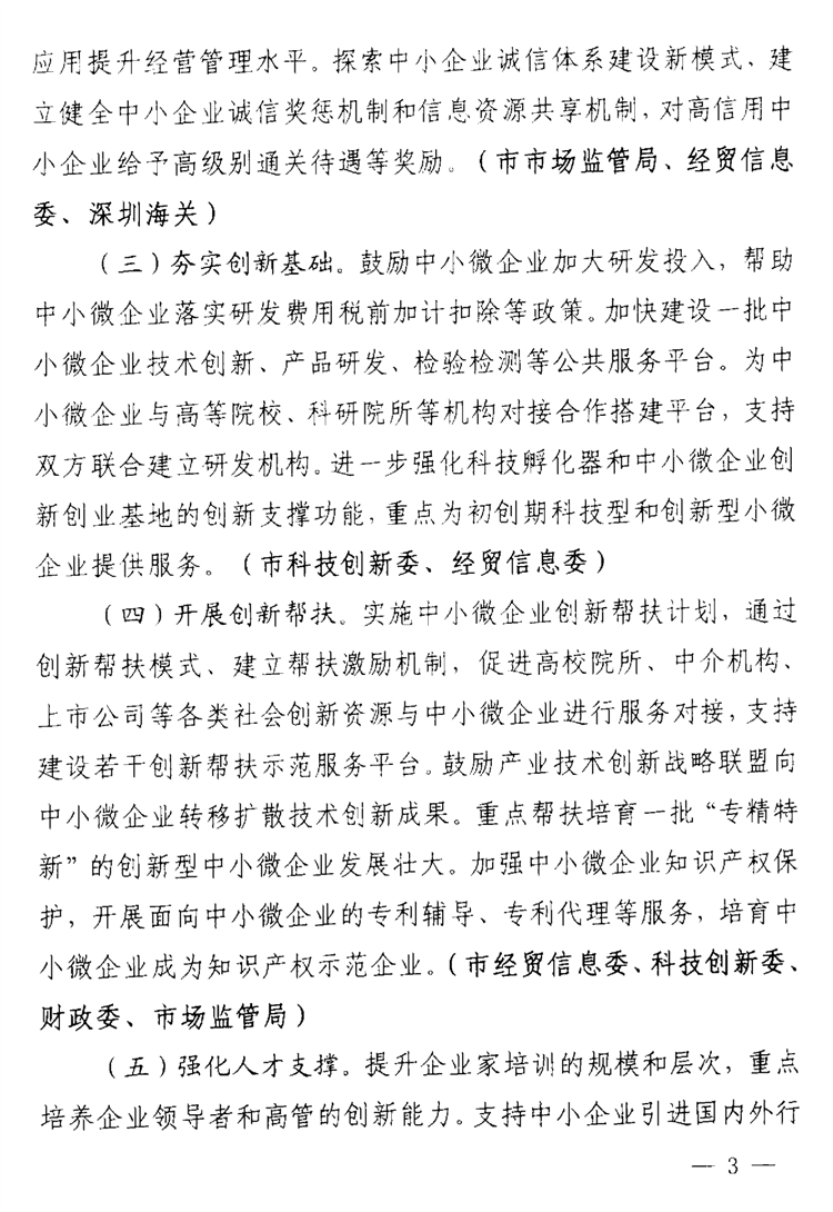 深圳市关于支持中小微企业健康发展的若干措施