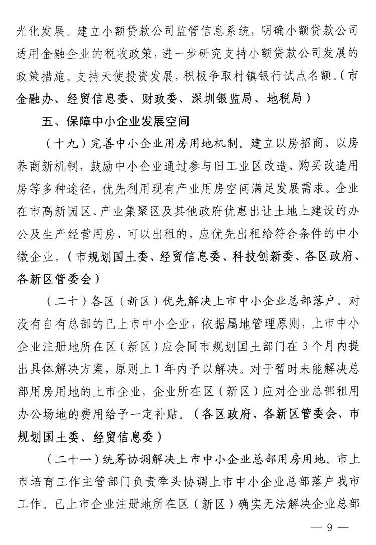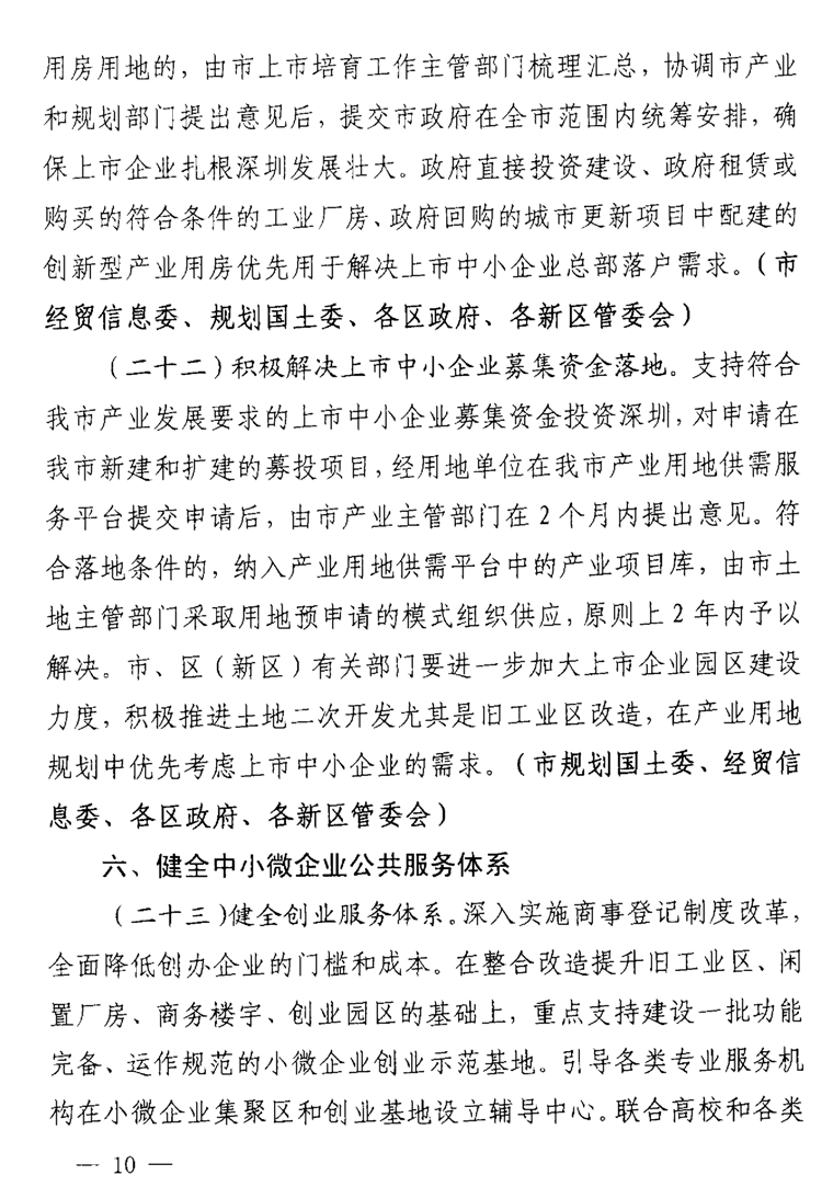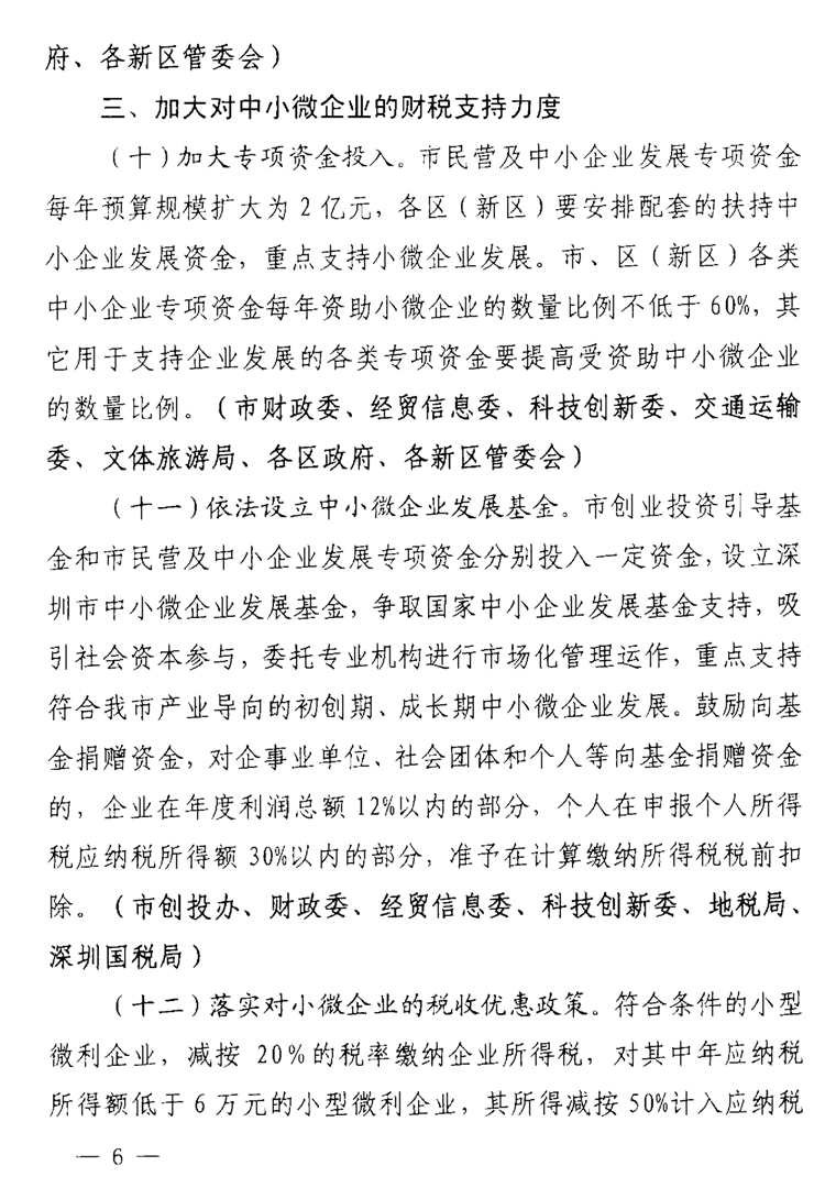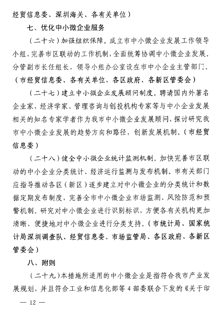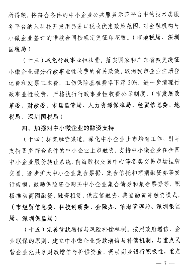 深圳市关于支持中小微企业健康发展的若干措施